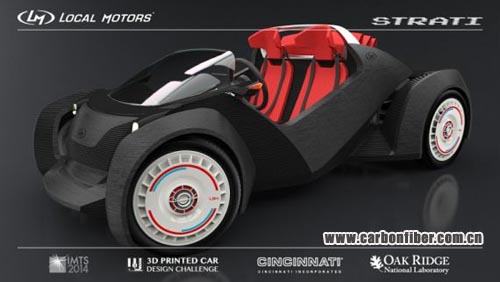 Local Motors方面表示,Strati汽車所用的碳纖維復合材料由Sabic創新業務部獨家提供。該新型3D打印汽車全身由40個部件組成。其中,13-20%為碳纖維增強型復合材料,87-80%為ABS樹脂。