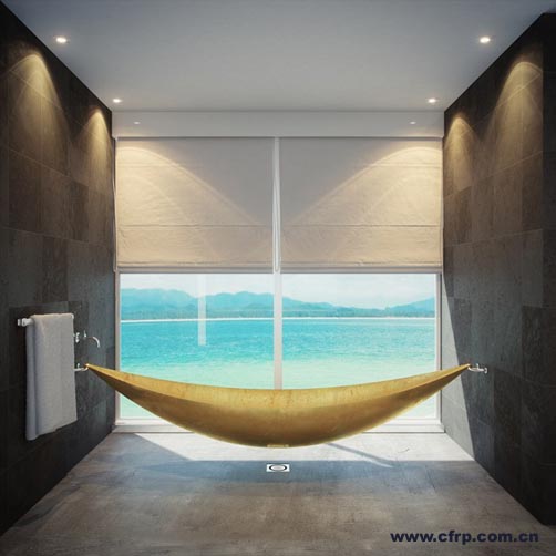 這種新型設(shè)計采用了運用在賽車運動以及航天工業(yè)中的碳纖維技術(shù),讓人們體會更為科技化的沐浴享受。碳纖維的材質(zhì)讓這款浴缸更為結(jié)實難用,并在表面附著一層鉑金,更顯得在簡約中透露著些許奢華。躺在這樣扁舟一樣浴缸里沐浴,你首先會想到的就是那首著名的《赤壁賦》了。