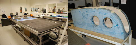 制造碳纖維箱體從模具開始,模具實際上是箱體的三維“底片”。此類模具由硬質材料制成,用于成形部件的表面上覆有脫模劑。然后通過手工或計算機化的切割系統將碳纖維板材切成合適尺寸。計算機化的切割系統可以優化部件的布局,盡量減少廢料。