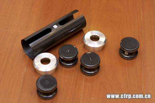 此產品采用航天級高質量碳纖維。因材質本身的韌度特性,可以有效吸收并抑制微震動的傳遞。內部芯材是采用高科技吸震發泡,更有效的把碳纖維過濾后的微震動給吸收消除,這些制震器達到了一個同類產品做不到的新境界。為了進一步加強碳纖維的強度,加入了不銹鋼環來保證它在承受重量下的耐用度,并且同時剪斷沿著碳纖維壁垂直傳遞的微震動。這些制震器運用了高階復合材料學原理,成功的把三種不同材質的物理特性用在最適當的地方。