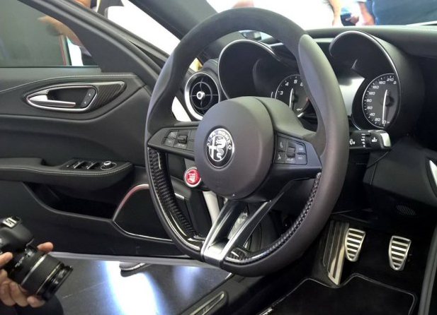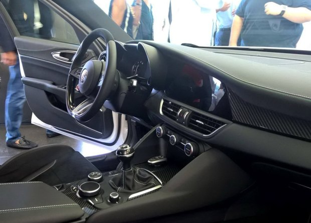阿爾法·羅密歐(Alfa Romeo)是意大利著名的轎車和跑車制造商, 阿爾法羅密歐旗下全新中型車Giulia Quadrifoglio version版本曾于6月25日正式發布,近日,外媒獲得了該車的內飾照,新車內飾運用了大量碳纖維裝飾。
