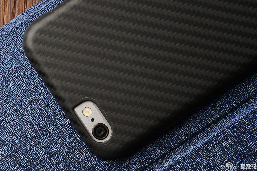 Evutec Karbon Sl保護套的厚度大概有1.5毫米左右,或許不算很薄,但大家都知道iPhone 6有一個比較煩人的地方,就是它那顆突起的攝像頭,套上Evutec Karbon Sl保護套以后背部恰好略微高出于攝像頭,平放在桌面上再也不用擔心會磨損攝像頭,影響成像效果了。