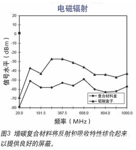 金屬外殼主要通過能量反射來提供EMI保護(hù)。當(dāng)多余的能量來自外殼外部時(shí),這是一個(gè)優(yōu)勢(shì)。當(dāng)外殼內(nèi)的電子設(shè)備輻射EMI時(shí),能量可被反射進(jìn)入電子設(shè)備,而不是消除。在另一方面,復(fù)合材料的外殼,提供了反射和吸收的結(jié)合。內(nèi)部電子輻射的能量被復(fù)合材料吸收和消散了。如圖3所示,在EMI測(cè)試中,以及在現(xiàn)實(shí)世界的表現(xiàn)上,復(fù)合材料可能比金屬的性能好。 copyright 123456