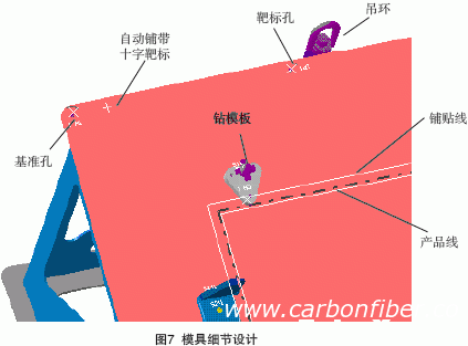 復合材料模具設計中細節(jié)設計非常重要,直接影響到模具使用的可操作性、方便性及自動化程度,甚至影響復合材料制件的質(zhì)量。模具上的細節(jié)設計(圖7)包括但不限于以下內(nèi)容: 本文來自123