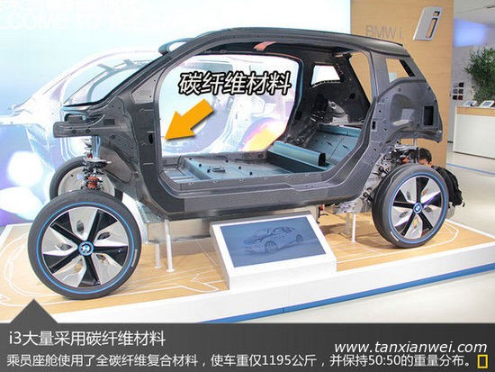 前不久寶馬首款以碳纖維復(fù)合材料為車身材料的量產(chǎn)電動汽車——i3也已在華亮相。其中i3在乘務(wù)艙內(nèi)大量運(yùn)用了碳纖維元素,使得這款電動車的整備質(zhì)量僅為1195公斤。i3碳纖維材料的使用成功的減輕了車身重量,從而平衡電池的重量,保持其前后50:50的重量分配比同時還幫助其增加了續(xù)航里程,并成為了全球最輕的電動車。 123456