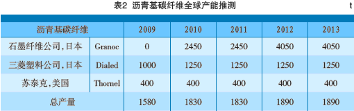 總之,PAN基碳纖維(大絲束和小絲束)的產(chǎn)能在2010~2013年將期望增長(zhǎng)24%(77650~96000t,見表1)。鑒于瀝青基碳纖維市場(chǎng)已經(jīng)較為成熟,所以產(chǎn)能變化很小(見表2)。