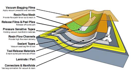 在目前的材料中,復合材料因其質輕高強而被廣泛應用。針對復合材料的制造工藝也在不斷的提高和創新。由起初的手糊,發展到機械化的噴射,拉擠,模壓等工藝,都現在興起的真空導入工藝,與真空導入相關的工藝還有樹脂傳遞模塑(RTM),真空輔助RTM (VARTM),真空袋壓,SCRIMP,SRIM(Structural Reaction Molding),RTI(resin film infusion).但都有一些差別,很多文章中都介紹過,這里就不贅述了。