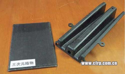 以編織物制作了中空形狀的預成型坯。采用RTM工藝將其與利用邊角料的支架一體成型。