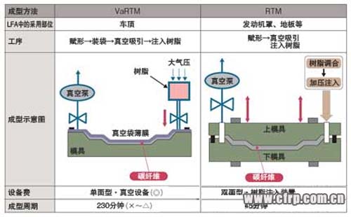 圖2 VaRTM(Vacume assisted RTM)與RTM(豐田的比較)