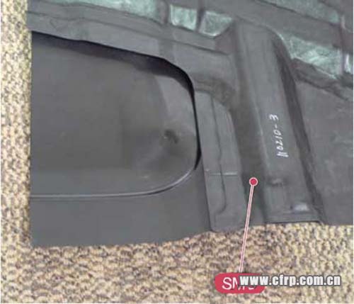 制造雷克薩斯LFA駕駛室時采用了三種成型方法。側(cè)欄及前部艙壁等具有中空構(gòu)造的主要骨架采用了預浸料工藝,前部碰撞吸能盒、A柱及地板采用了RTM工藝,后部部件采用了以碳纖維加固的SMC(片狀模壓料)成型工藝(圖11)。