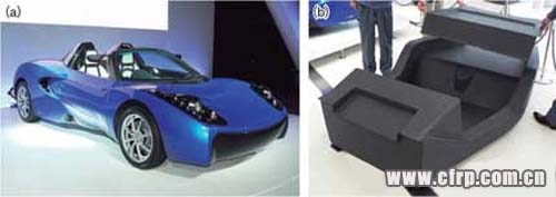 富士重工業(yè)2011年發(fā)售的400輛限量車型“翼豹WRX STItS”的車頂就使用了VaRTM工藝〔圖3(a)〕。據(jù)該公司介紹,在小批量生產(chǎn)時,因不需要制造模具,所以模具費用低于RTM。