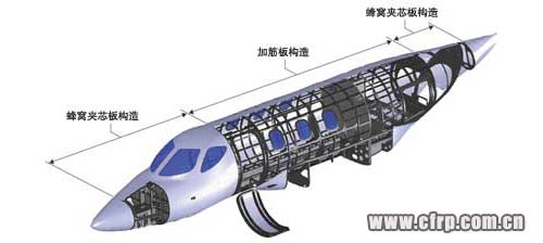 而加筋板構造適合比較簡單的形狀,因此應用在了接近圓筒形的機身中央。在為增加搭乘人數而延長HondaJet機體,開發衍生機型時也容易沿用。