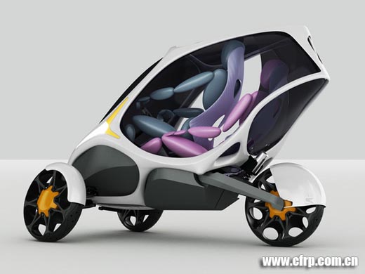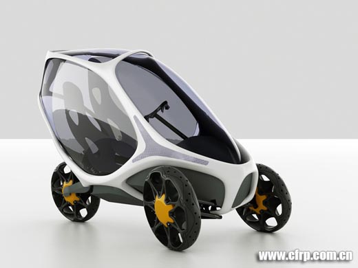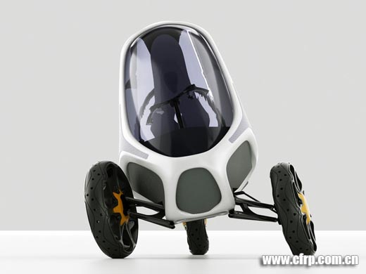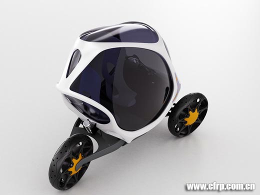 Ionut Predescu是一位羅馬尼亞的工業設計師,下面這組作品是他設計的一部概念三輪汽車,全車使用電力驅動,碳纖維的框架,透明的聚碳酸酯太陽能車頂棚在空閑時可以隨時吸取太陽能充電。