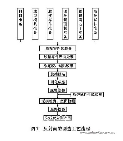 c波段天線主要由天線反射面及其它支撐結構組成。本文著重介紹其反射面型面精度和尺寸穩定性控制,根據我單位承擔某型號任務要求,其天線反射面的制造工藝流程,見圖2。