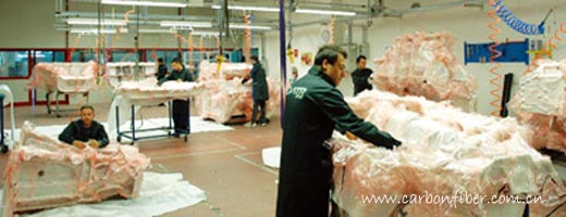 由于使用半成品的預浸料,可以連續鋪貼,提高了速度,因而取代了以往重復交替的纖維和樹脂的逐層鋪貼工序,使得生產效率大為提高,成為一種普遍采用的量產化的生產工藝。根據制品的不同,預浸料成型工藝的產量一般在幾千到幾萬件之間,非常適合于定制產品的生產。