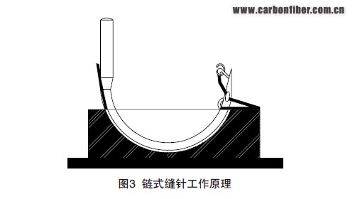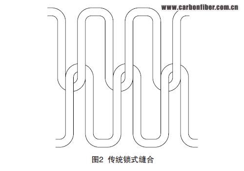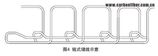 單面縫合是縫針從預(yù)制體的上面穿透制件進行縫合,而另一面沒有縫合單元,縫頭只是在被縫合件的單面完成縫合工作。復(fù)合材料常用的單面縫合主要有鏈?zhǔn)脚cTufting 2種縫合方式 。