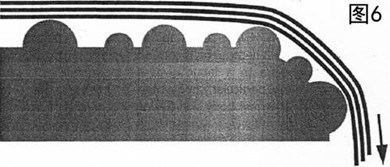 德國TOPOCROM公司開發(fā)了適用于碳纖維加工過程的導絲輥和其元件(圖2)。一般的羅拉在導絲過程易產(chǎn)生斷絲(圖3)或毛絲(圖4),由此常發(fā)生中斷現(xiàn)象,而該公司設計的羅拉表面如圖5所示,絕對無銳邊并形成“軟”形態(tài)(圖6),在絲束行進過程形成氣墊而有利于更好滑動(圖7),總之,它適用于加工碳纖維、芳綸、玻纖、陶瓷纖維及玄武巖纖維,而且具有高耐磨和耐腐蝕性、壽命長、均勻的表面結(jié)構(gòu)而有利于纖維的緩和處理,可達到最佳拉伸狀態(tài)、滑動性良好,并具有良好的緩沖和減震作用。
