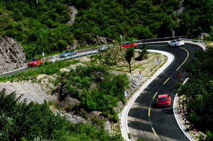 20km之后車隊擺脫了束縛駛入高速,將Drivelogic換檔響應調到最高級別,此時發動機轉速要拉到接近紅線才會被迫晉升檔位。需要超車或全油門加速時變速器甚至會連降3-4檔以輸出到最大扭矩。直接的講,Drivelogic系統的最高級是最暴力、最直接的。變速器對動力釋放變得毫無保留,只要我需要它便會幫助我一起壓榨出更多。 copyright 123456