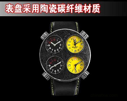 他們的靈感來自四個缸體的手表獨具創意,四個表盤分別采用了四種不同的瑞士機械走時系統,這款陶瓷碳纖維手表的表殼是由Brembo使用同制造制動碟一樣的工序加工出來的,短小的碳纖維中還整合了高強度的陶瓷。